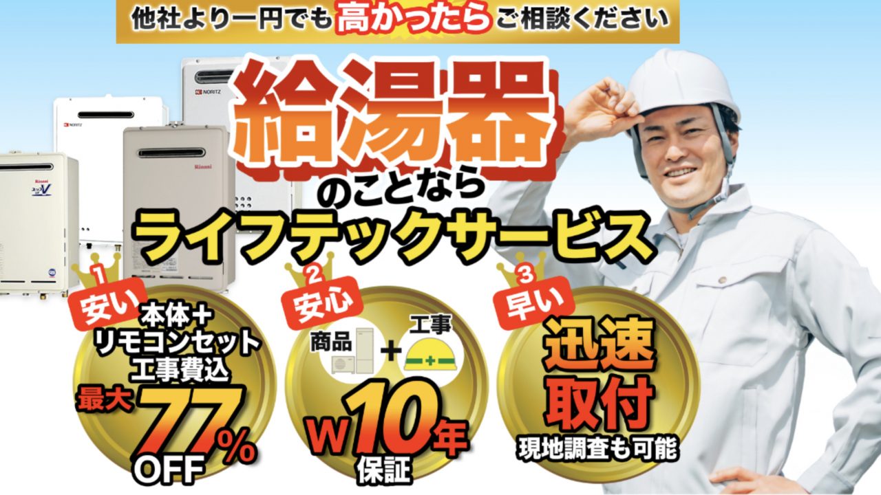 姫路で給湯システム販売取り付け業者をお探しなら、株式会社ライフテックサービスへ。 兵庫県姫路市、西飾磨駅から徒歩12分の場所に拠点を構え、兵庫県全域でガス給湯器・エコキュートの設置・交換・修理やキッチン・洗面所・お風呂・トイレの水回りリフォーム・水漏れ修理など幅広く対応。