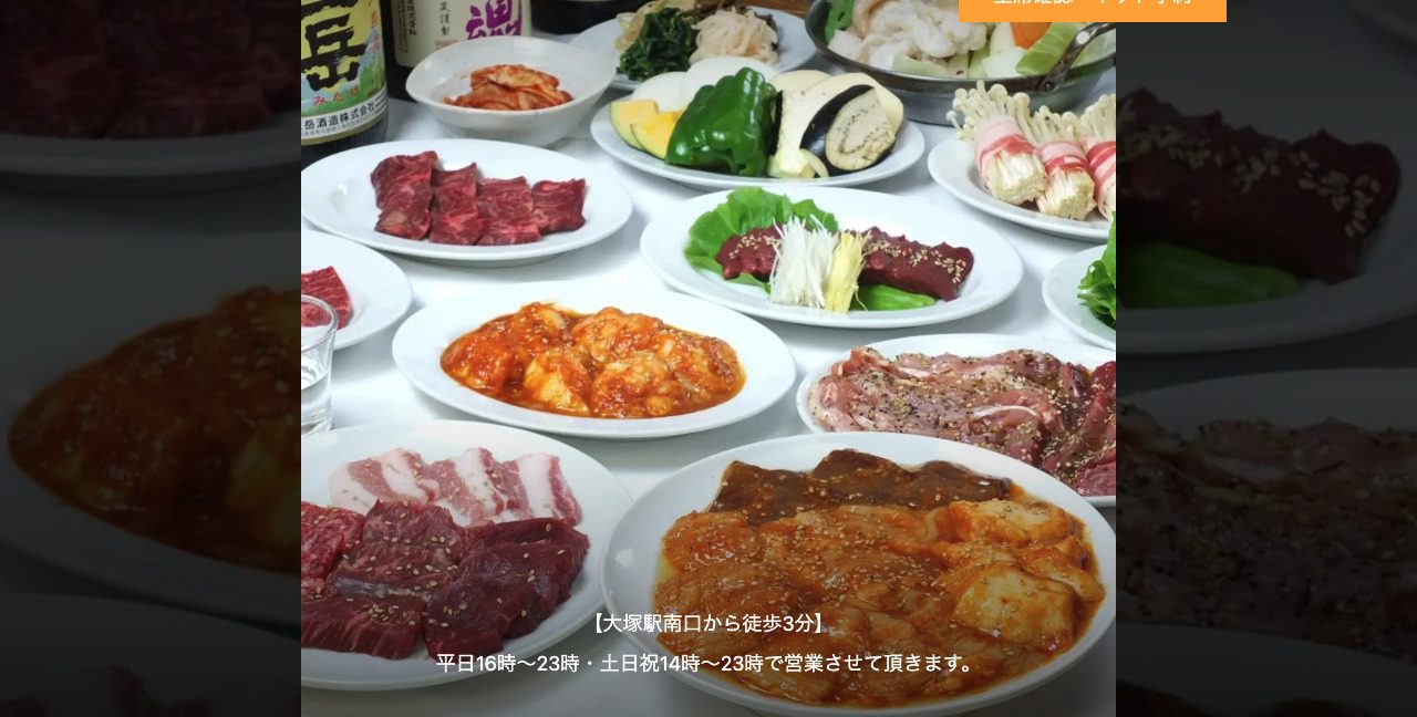 | 提供サービス | 大塚【焼肉】 バリエーションに富んだ様々な部位のお肉、そして多彩な一品料理までをご提供している焼肉屋 |